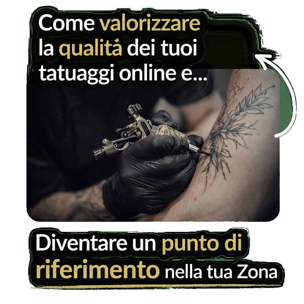 Scoprirai come posizionarti come punto di riferimento nella tua zona e per il tuo stile di tattoo, attirando clienti che scelgono te per il tuo valore — non perché fai lo sconto più basso.
